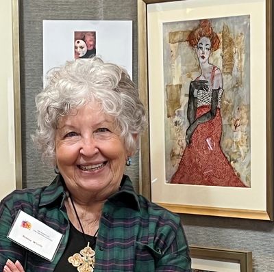 Bonnie's subjects are primarily women, and her signature style is whimsical femininity. She has been drawing and painting for more than 30 years and regularly participates in local, national and international competitions and shows. To her preferred medium of watercolor, as well as collage, charcoal and acrylic, she brings significant artistic education and accomplishment. She studied design and art history at the University of Houston and advertising art and journalism at the University of Oklahoma. At the University of California, San Diego, she earned a Professional Certificate of Fine Arts.